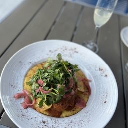 I was invited back to The Shore to have a better experience courtesy of Michael and his team of The Renaissance. My husband and I came in on Sunday at noon and were promptly seated outside. I got the bottomless mimosas with grapefruit, orange, and cranberry juice and my husband had a beer. The champagne came in a glass and a carafe was placed on the side as well. Delicious! We started with the Salmon Tostadas - and they were AMAZING! The sauce was delicious, the fish was soft, and the shell was crunchy. We asked our AWESOME server what the sweetness was and she asked the chef - sugar in avocados make it more of a mousse like texture. Good to know. Then we ordered our main course. I had the Avocado Brioche Toast (again :)) with bacon on the side. My husband had the burger and fries. He absolutely loved the fries - those crunchy battered ones. My toast was delicious. The most fluffy and perfect toast with a beautiful over-medium egg! The bacon was crispy and delicious. Our server was very attentive the entire time and extremely kind! Her conversations were fun and she did not feel overbearing nor inattentive! We finished with the chocolate torte! Very rich but very delicious. It was a great way to end the brunch! Thank you to Michael and his team on making this an amazing experience. We can't wait to come backz